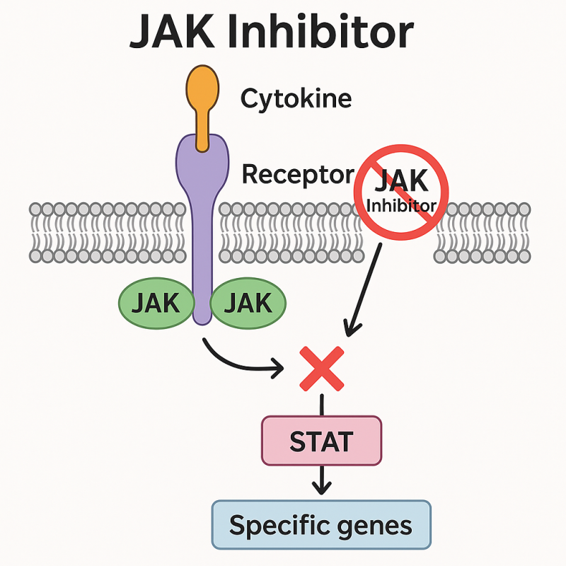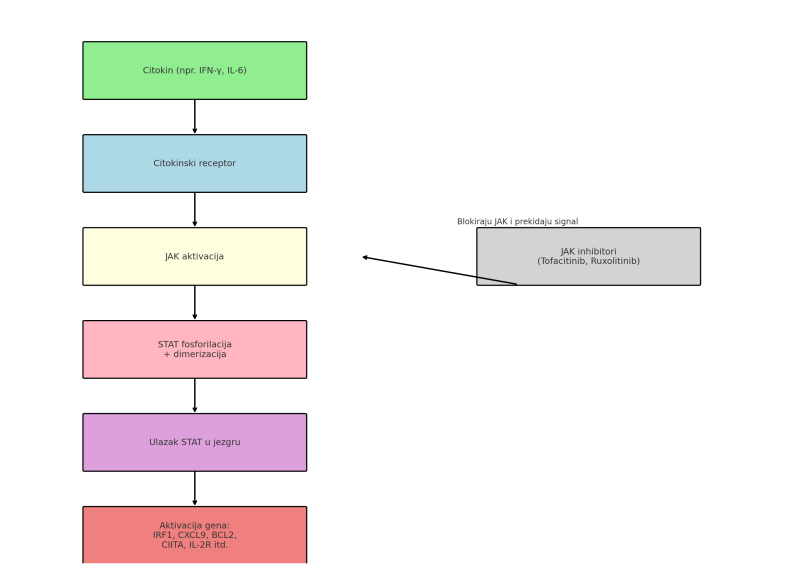 -Suvremeni JAK inhibitori (npr. tofacitinib, ruxolitinib) blokiraju ovu signalizaciju i tako prekidaju upalni odgovor.